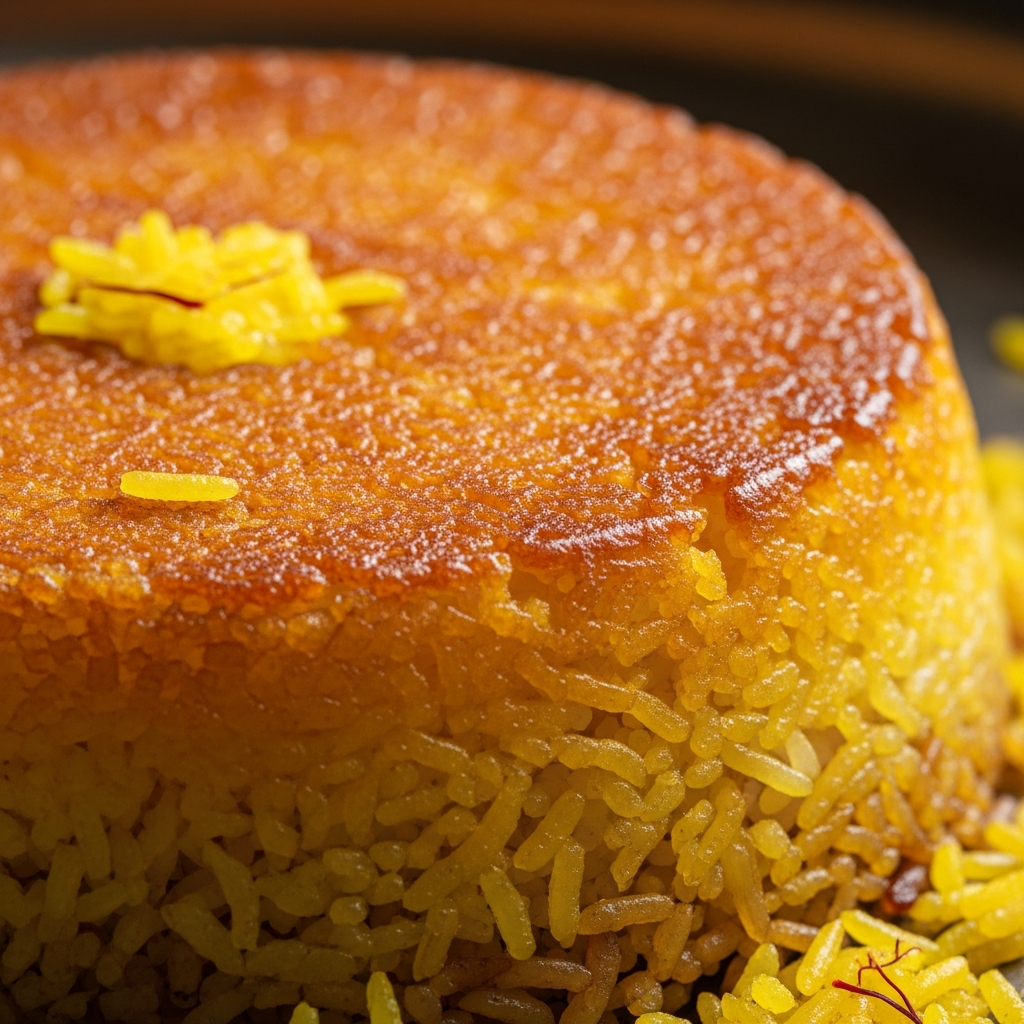 O arroz é o pilar da culinária iraniana, mais que um acompanhamento, é uma estrela. É preparado meticulosamente para ser solto, longo e perfumado, culminando no cobiçado 'tahdig', uma crosta dourada e crocante do fundo da panela. Simboliza prosperidade e é a base para a maioria dos pratos principais, dos 'chelos' (arroz branco simples) aos 'polos' (arroz misturado com outros ingredientes).