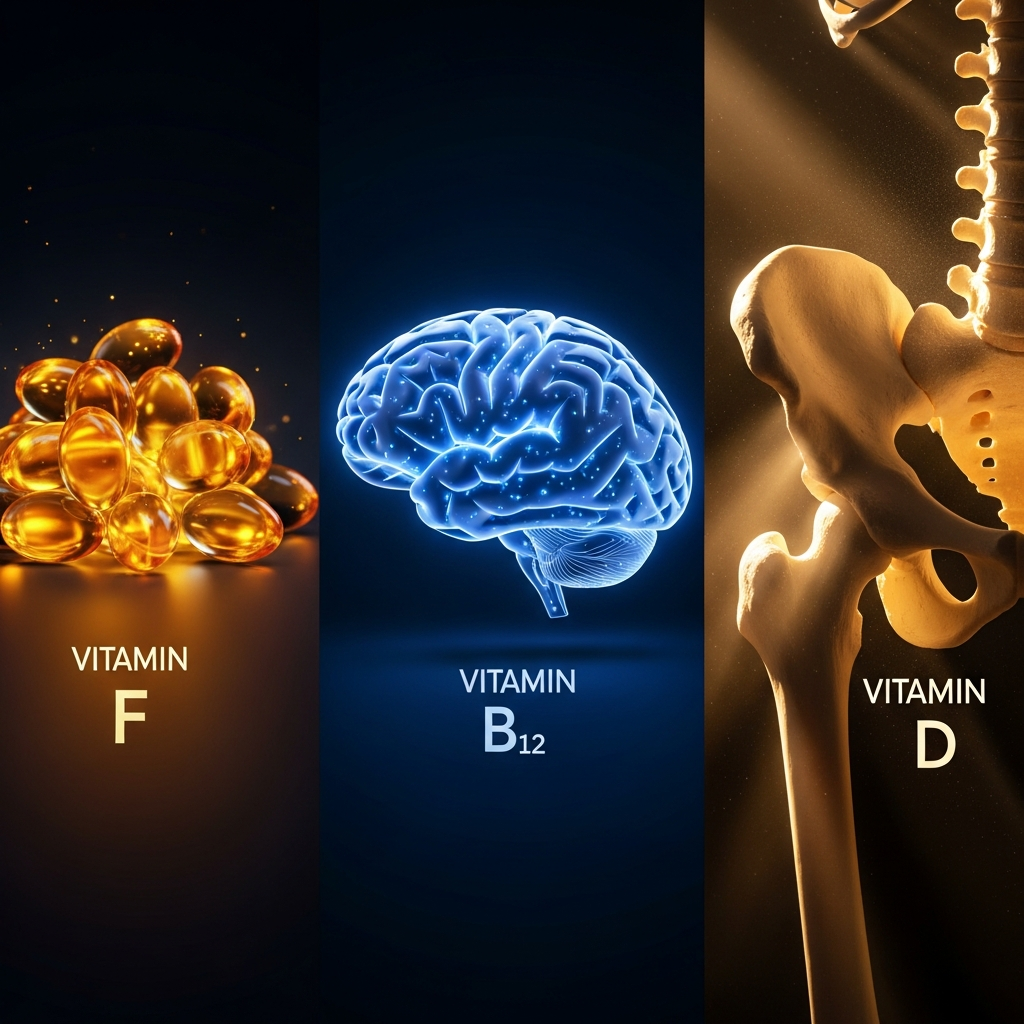 No vasto universo da nutrição, frequentemente ouvimos falar sobre os benefícios isolados de certas vitaminas. No entanto, o corpo humano não opera em compartimentos estanques; ele é uma rede interconectada de reações bioquímicas. Entre os micronutrientes que mais têm ganhado destaque nas pesquisas recentes pela sua capacidade de manutenção estrutural e funcional, encontram-se a Vitamina F, a Vitamina B12 e a Vitamina D. Este trio, embora bioquimicamente divergente — variando de ácidos graxos essenciais a vitaminas hidrossolúveis e pró-hormônios lipossolúveis — desempenha papéis cruciais na preservação da integridade da barreira cutânea, na saúde do sistema nervoso central e na robustez do esqueleto. Compreender a profundidade desses elementos é o primeiro passo para uma longevidade ativa e uma estética saudável, que vem de dentro para fora. Ao longo deste artigo, detalharemos cada uma dessas substâncias, revelando por que a deficiência de apenas uma delas pode desequilibrar todo o sistema, afetando desde a luminosidade da pele até a clareza mental e a força física.